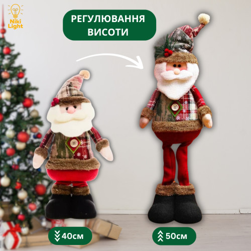 Новорічна фігурка Діда Мороза на телескопічних ніжках – 50 см: Чарівний декор для зимових свят