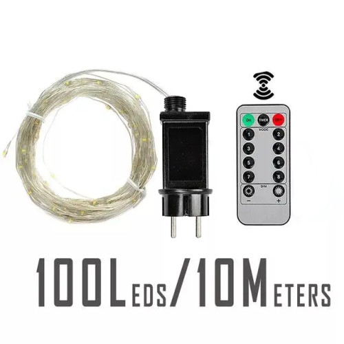Обирайте гірлянду роса на 10 метрів з 100 LED ліхтариками та пультом для створення неповторної атмосфери у вашому зовнішньому просторі. Замовляйте зараз і додайте особливий шарм до вашого свята!