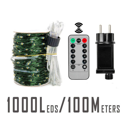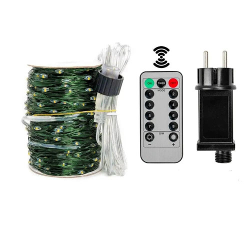 | Комплектация | ● Гирлянда капля росы 100 метров 1000 LED с питанием от сети 220В, зеленый провод ● Пульт дистанционного управления ● Батарейка к пульту управления CR2025 |