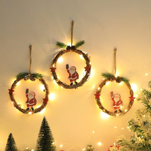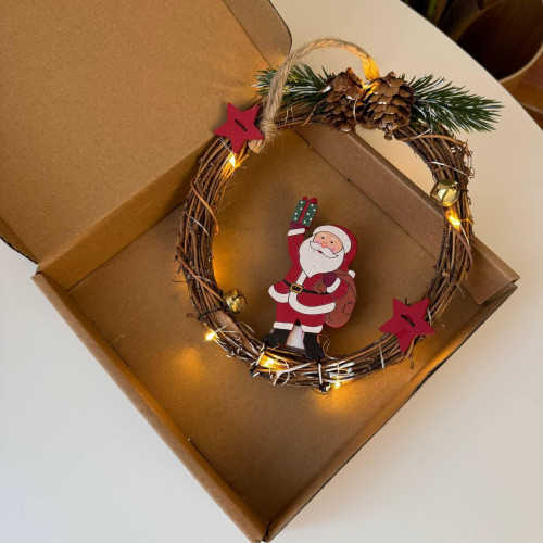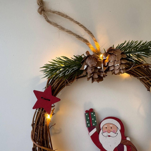 Різдвяний вінок з ротанги новорічний віночок підвісний декор діаметр 18 см Niki Light LED від батарейок дід мороз