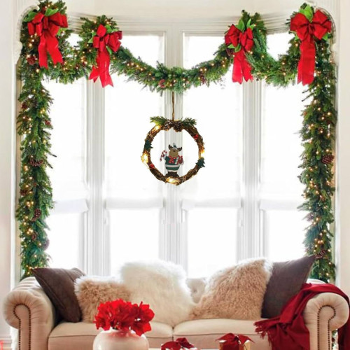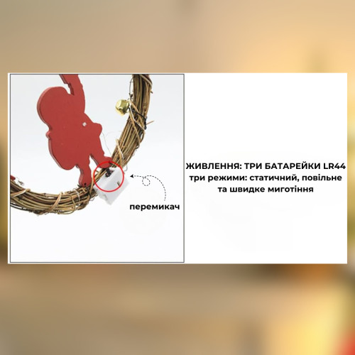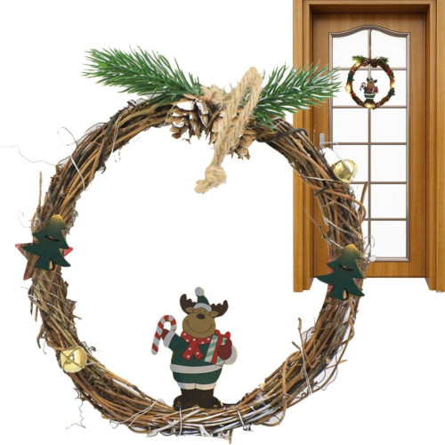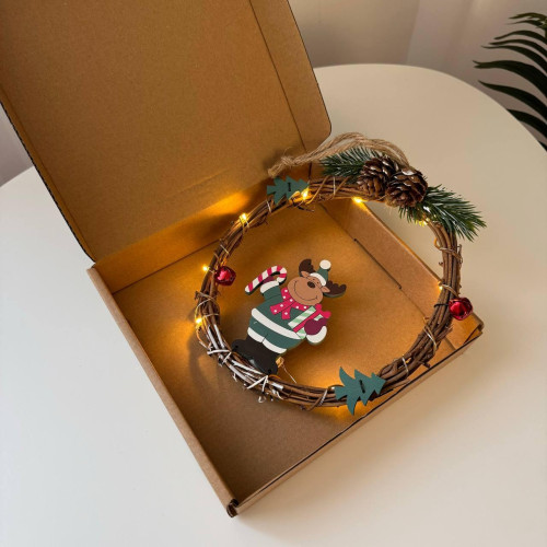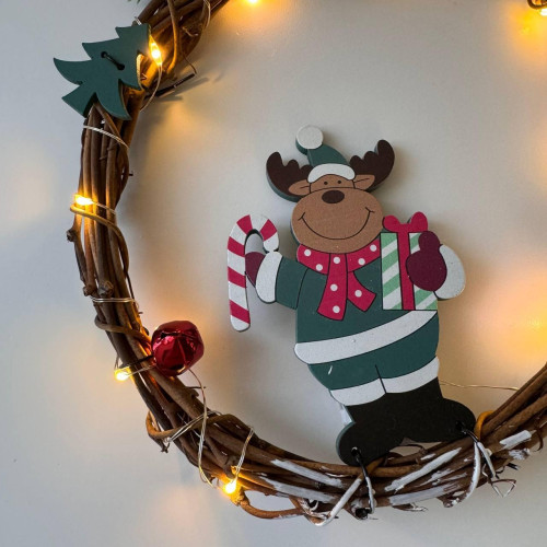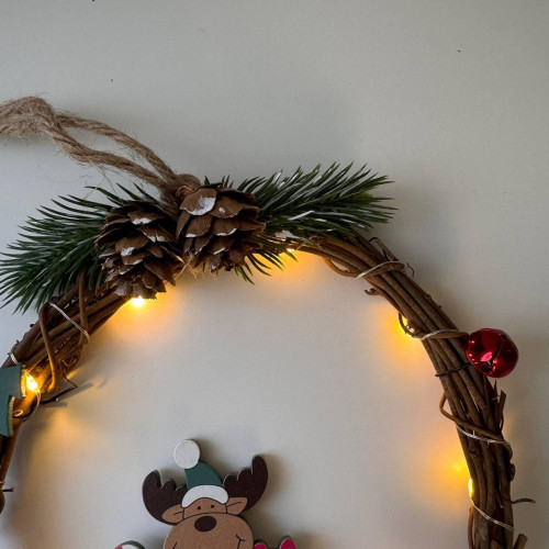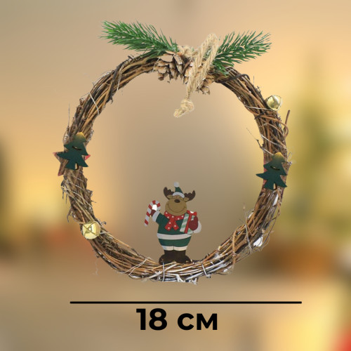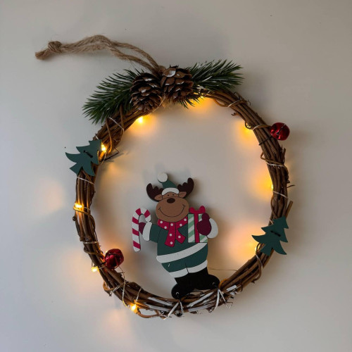 Різдвяний вінок з ротанги новорічний віночок підвісний декор діаметр 18 см Niki Light LED від батарейок олень