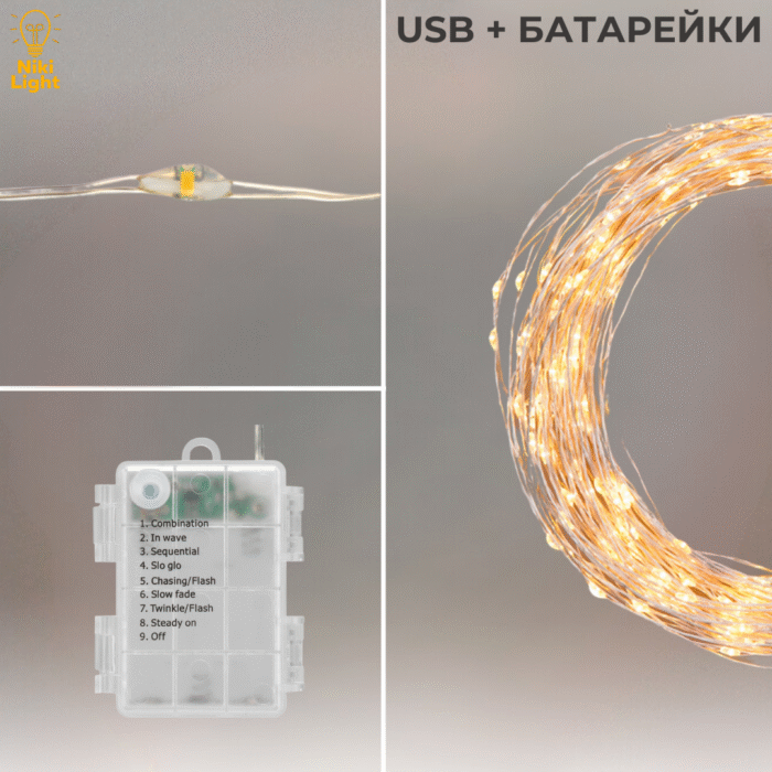 • Універсальність живлення: можливість живлення від USB або батарейок, що робить гірлянду зручною для будь-яких ситуацій.
