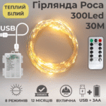 Обирайте гірлянду роса на 30 метрів з 300 LED ліхтариками та пультом для створення неповторної атмосфери у вашому просторі. Замовляйте зараз і додайте особливий шарм до вашого свята!