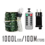 Гірлянда роса на зеленому проводі 100 метрів 1000 лед Niki Light капля роси з режимами вулична гірлянда на пульті біла