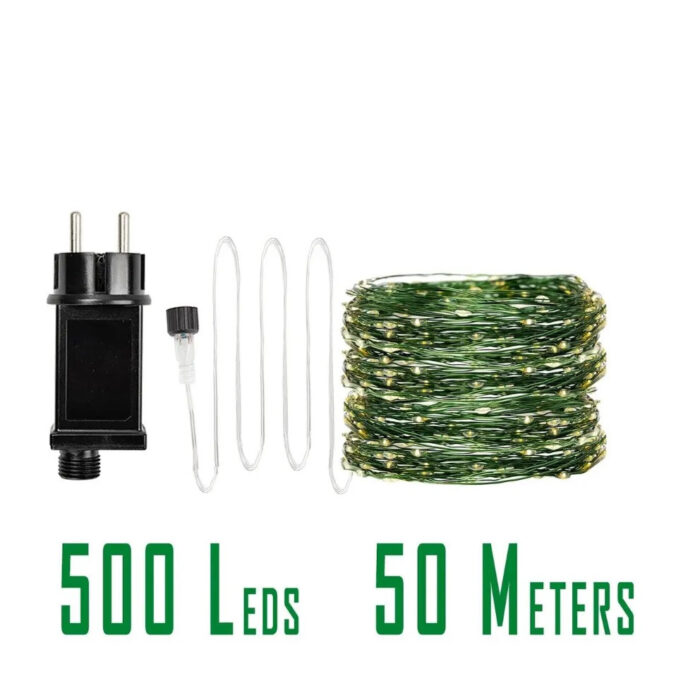 Гірлянда Роса на зеленому проводі 50 метрів з Режимами, тепло-біла