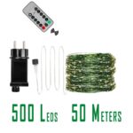 Гірлянда роса на зеленому проводі 50 метрів 500 лед Niki Light капля роси з режимами вулична гірлянда на пульті Біла