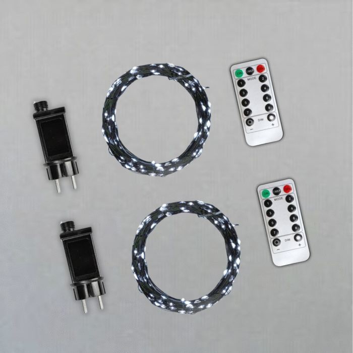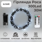 Комплект 2 гірлянди роси на зеленому проводі 30 метрів 300 лед Niki Light капля роси з режимами вулична гірлянда на пульті біла