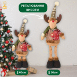 Олень є невід'ємною частиною новорічної символіки, адже саме він везе сані Діда Мороза з подарунками. У цьому наборі олень також має телескопічні ніжки, що дозволяє змінювати його висоту відповідно до ваших потреб. Олень на телескопічних ніжках виглядає елегантно та витончено, підкреслюючи святковий настрій вашого дому. Його натуральні кольори ідеально поєднуються з іншими новорічними прикрасами, такими як ялинкові іграшки та гірлянди. Ви можете розмістити його поряд із ялинкою або створити окрему композицію на каміні чи комоді, додавши інші новорічні фігурки для більшого ефекту.
