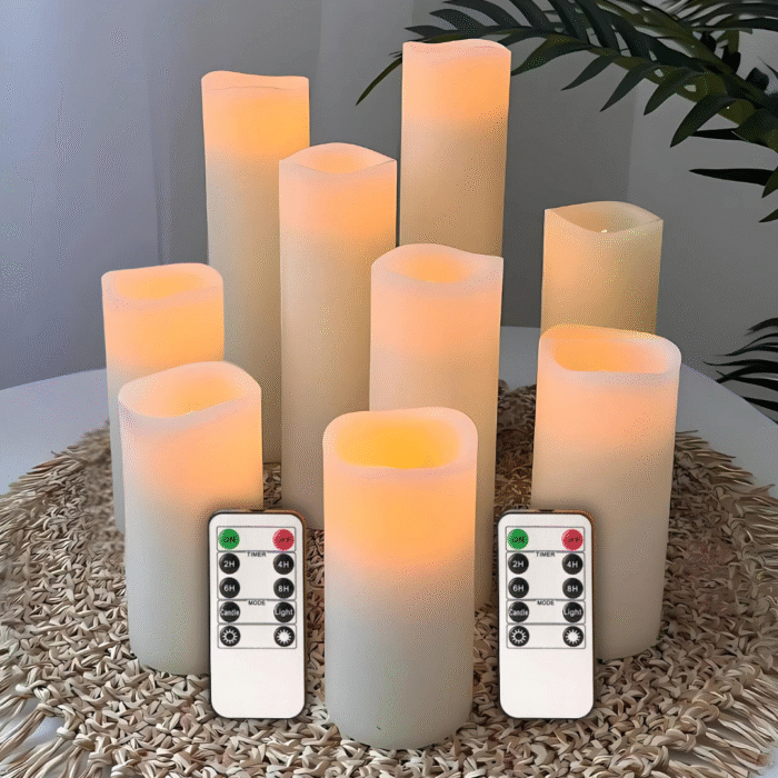 Однією з головних переваг цього набору є пульт керування, що робить користування електронними LED свічками з пультом ще більш зручним. З його допомогою ви можете керувати всіма дев'ятьма свічками одночасно. Це особливо зручно, коли свічки розташовані в різних частинах кімнати або у важкодоступних місцях. Ви можете включати і вимикати лед свічки, регулювати яскравість світла, встановлювати таймери на автоматичне вимкнення. Це дозволяє заощадити енергію та продовжити термін служби батарейок.
