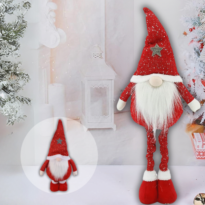 Одна з головних переваг цього гнома – його регульовані ніжки. Завдяки цій функції ви можете змінювати висоту гнома від 40 см до 70 см, що дозволяє розміщувати його в різних частинах вашого дому. Незалежно від того, чи ви вирішите поставити його на полиці, біля каміна або у передпокої, гном виглядатиме прекрасно і створюватиме святковий настрій.