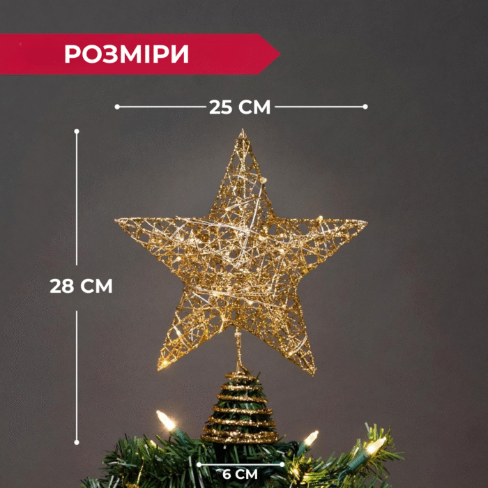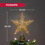 • Легкість у встановленні: Завдяки металевому каркасу, зірочка легко і надійно кріпиться на верхівку ялинки.