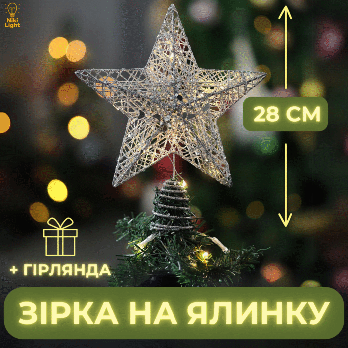 Створіть незабутню атмосферу цього Нового року з нашою зірочкою на верхівку ялинки. Замовляйте зараз і отримайте гірлянду в подарунок, щоб ваша ялинка сяяла яскравіше, ніж будь-коли!