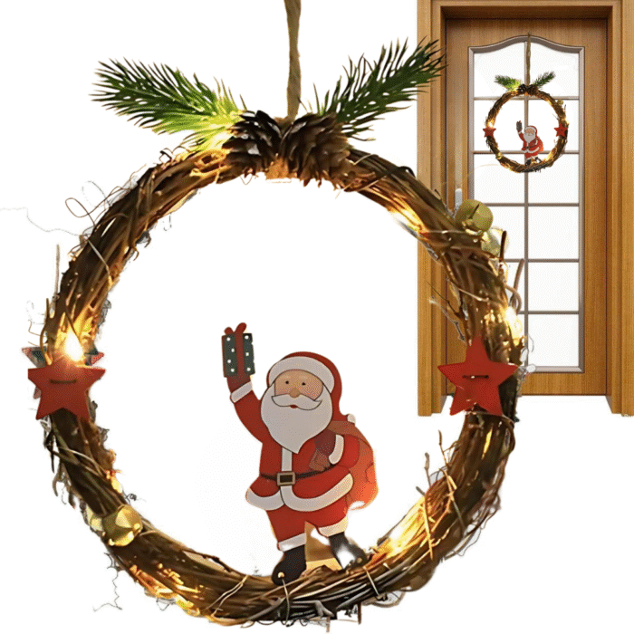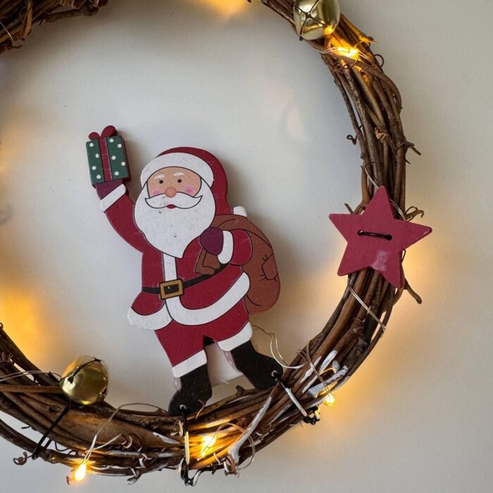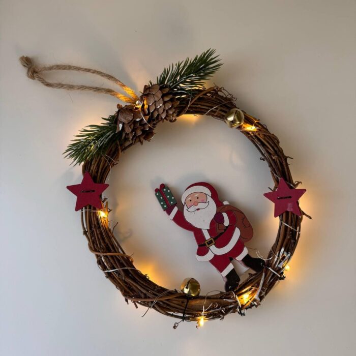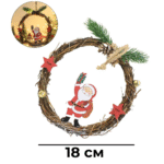 Різдвяний вінок з ротанги новорічний віночок підвісний декор діаметр 18 см Niki Light LED від батарейок дід мороз
