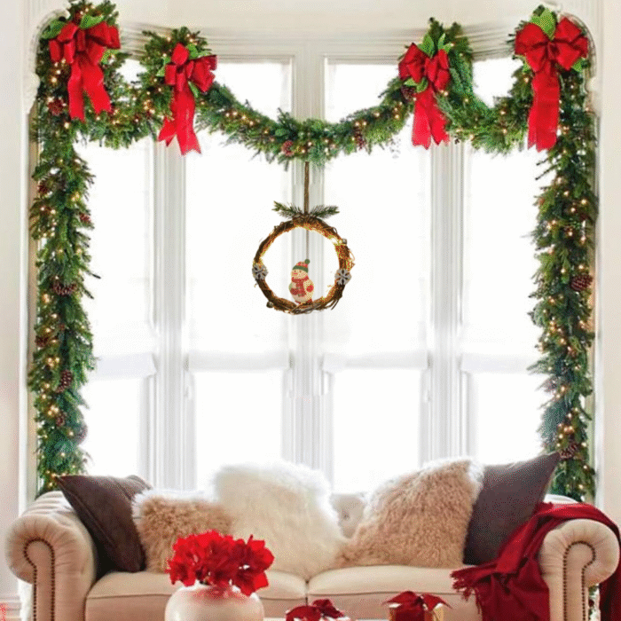 Різдвяний вінок з ротанги новорічний віночок підвісний декор діаметр 18 см Niki Light LED від батарейок сніговик