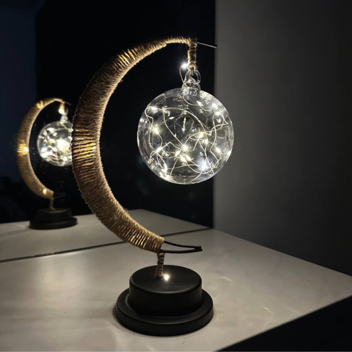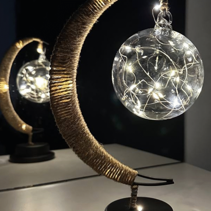 Лед Світильник Нічник у формі півмісяця металевий зі скляною кулькою та конопляною мотузкою