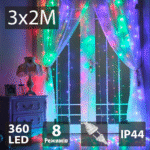 Світлодіодна гірлянда-завіса Christmas Decoration 360LED 220В 3×2м Різнокольорова