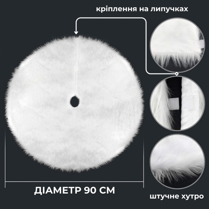 Cпідниця під ялинку rилимок для ялинки Niki Light хутрові килимки під ялинку Білий 90 см