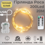 Обирайте гірлянду роса на 20 метрів з 200 LED ліхтариками та пультом для створення неповторної атмосфери у вашому просторі. Замовляйте зараз і додайте особливий шарм до вашого свята!