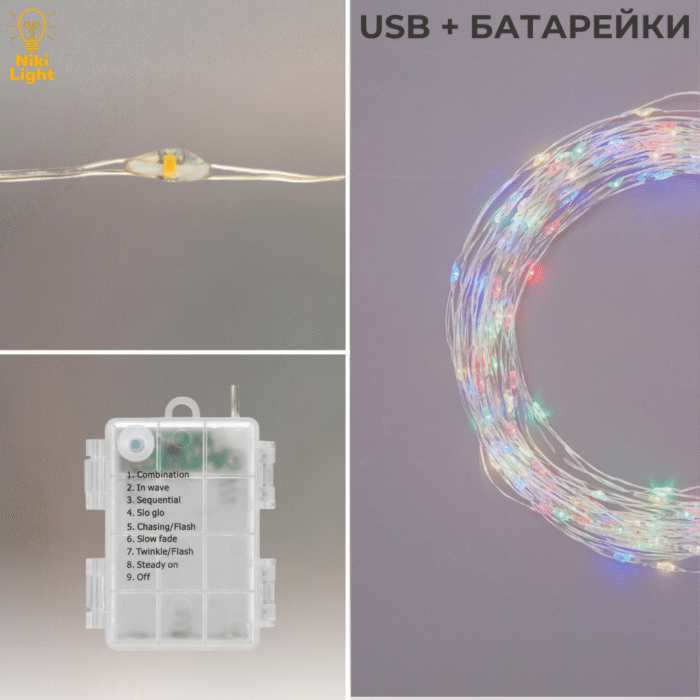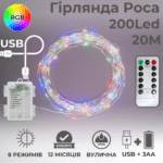 Гірлянда на батарейках роса 2в1 Niki Light 20 метрів 200 лед пульт 8 режимів гірлянда від батерейок та USB Мультиколор
