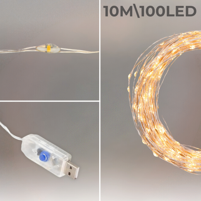 1. Довжина та кількість LED: 10 метрів з 100 LED ліхтариками забезпечують яскраве та рівномірне освітлення.