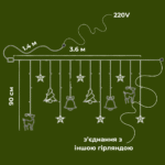 Гірлянда штора на ялинку вікно камін 138 led світлодіодна 3м зі шнуром 1м (подовжувач у комплекті) гірлянди шторки з фігурками дзвіночки ялинки олені IP44 для будинку приміщення лід завіса тепло біла