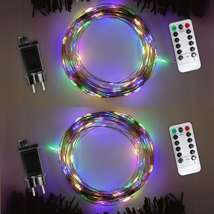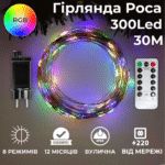 Набор из 2 гирлянд "Роса" на зелёном проводе, длина 30 метров, 300 светодиодов Niki Light, эффект капель росы, с режимами работы, уличная гирлянда с пультом дистанционного управления, мультиколор.