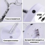 Тип живлення: Світильник може працювати як від USB, так і від трьох батарейок типу AA. В комплекті йде блок живлення та батарейки, що забезпечує зручність і мобільність у використанні. Ви можете розмістити його в будь-якому місці, незалежно від наявності розеток.
