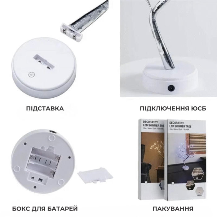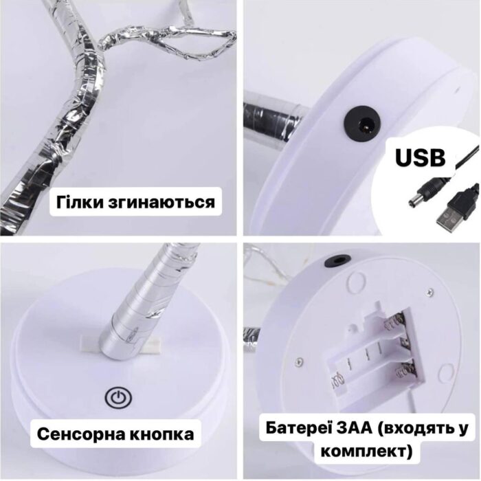 Гнучкі гілочки: Гілочки дерева легко згинаються, що дозволяє вам налаштовувати їх під свої вподобання та створювати індивідуальний вигляд світильника.