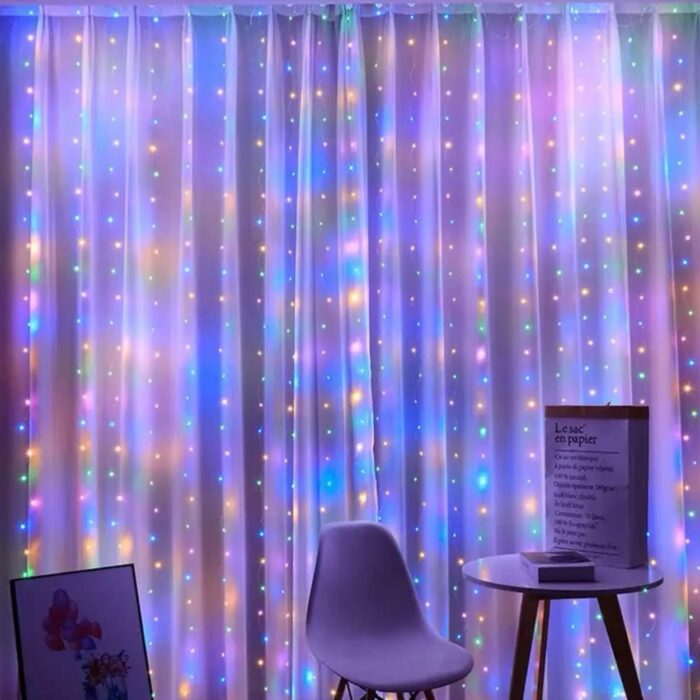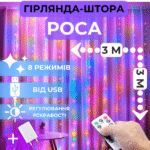 Світлодіодна гірлянда штора роса Niki Light штора від USB 8 режимів гірлянда завіса з пультом 15 ліній 450 лед 3×3м мультиколор різнокольорова